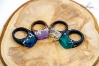 Эпоксидная смола, красное дерево (падук), полисандр, орех, манджурский граб (черный), маслянная пропитка. Размеры 15-18